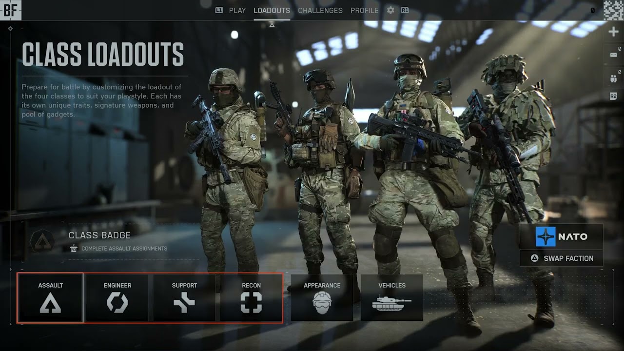You’ll find everything but your tier skips and Battlefield Pro Token in the Loadouts tab. To find your content:- From the main menu, open the Loadouts tab.