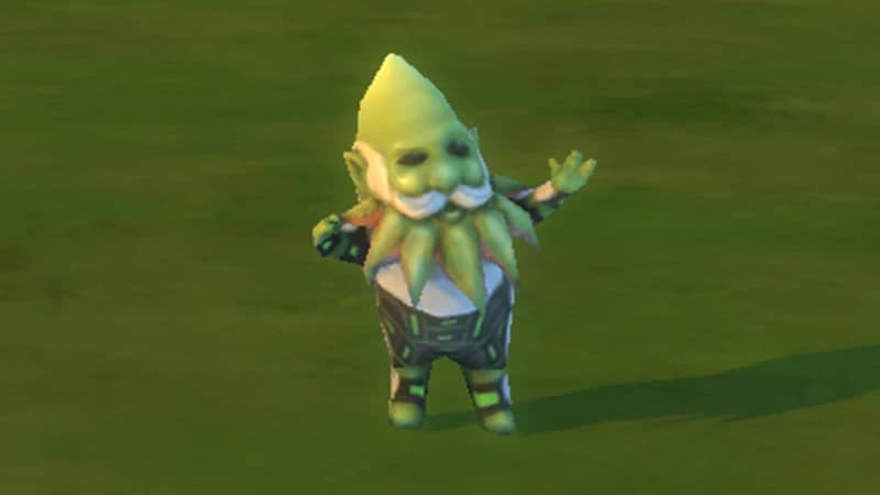 This Gnome is a green futuristic alien with a pointy head. Guardian of the Gnomelaxy can be appeased with Coffee, Future Cube, and Toys.