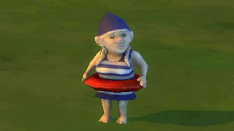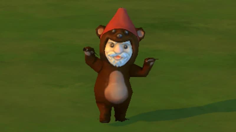 A Gnome dressed in a bear costume. Bearely Gnome can be appeased with Pie, Salad, and Toys.