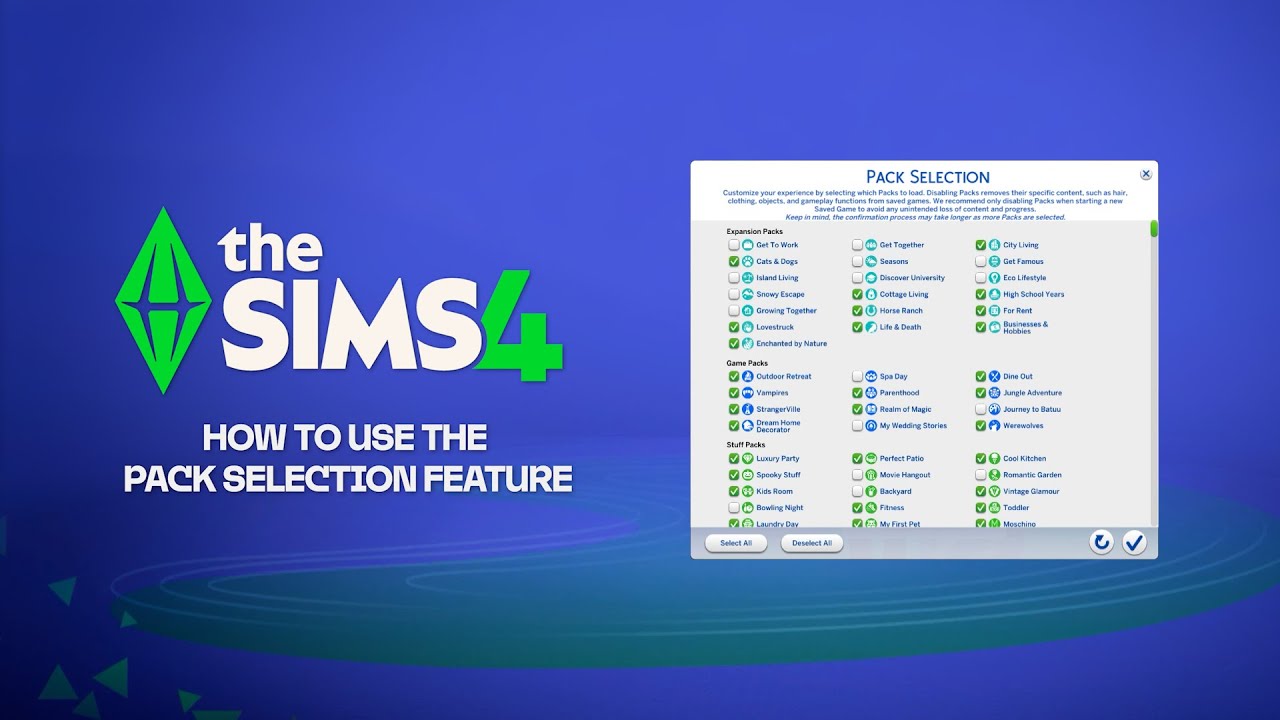 Need help installing or managing a Pack in The Sims 4? Use this guide to install Expansion, Game, and Stuff Packs in The Sims 4 and take control with the Pack Selection feature.