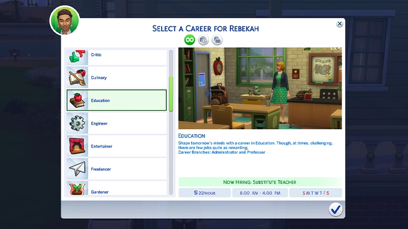The Education career comes with The Sims 4 Discover University Expansion Pack and has two career branches:- Administrator